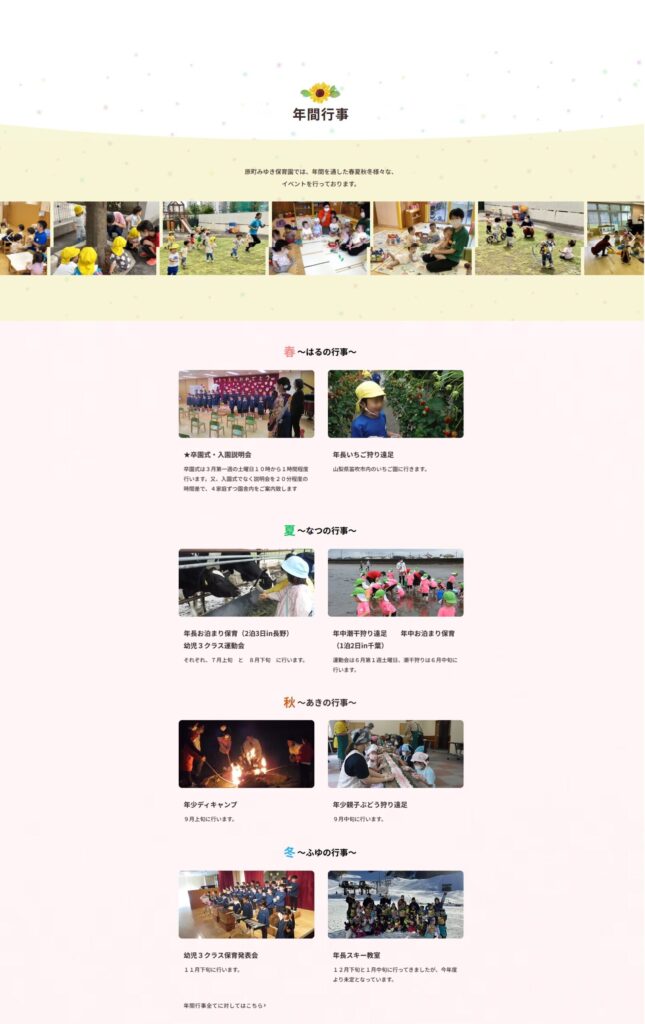 季節ごとの行事を写真付きで紹介し、園生活の楽しさを伝えます。