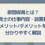 夜間保育とは?保育士の仕事内容・設置基準・メリット/デメリットをわかりやすく解説